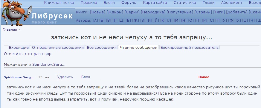 alexk RE:DNS 2 дня sem14 RE:Гонкуровская премия 2 дня Dead_Space RE:Беженцы с Флибусты 4 дня Саша из Киева RE:Приключения белочки Рыжки 2 недели alex-from RE:Оплатил два раза, но абонемента нет 2 недели sem14 RE:Книжная серия "Жизнь в искусстве" издательство "Искусство"... 3 недели Kiesza RE:На 78-м году жизни скончался советский и российский... 3 недели Paul von Sokolovski RE:Бушков умер. 1 месяц lemma7 RE:Серия «Интеллектуальный детектив» изд-ва АСТ 1 месяц mig2009 RE:Багрепорт - 2 1 месяц Isais RE:Издательство "Медуза" 1 месяц babajga RE:Народные сказки - Сказки народов Сибири = Fairy-Tales of... 1 месяц Саша из Киева RE:Кто сможет раздобыть и оцифровать нужные мне книги? 1 месяц sibkron RE:Серия "Библиотека французской литературы" (Макбел) 1 месяц Isais RE:Игорь Северянин - Том 2. Поэзоантракт 1 месяц sem14 RE:Современная корейская литература. Книжная серия... 1 месяц sem14 RE:Семейственность в литературе 1 неделя Впечатления о книгах